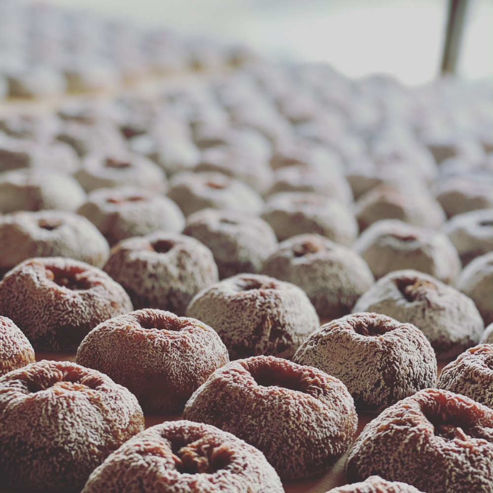 干し柿の揉みこみ作業を始めました! もうすぐ、白く粉の吹いた干し柿が完成します。 12月中旬には、販売できることと思います。 理屈ではわかっているつもりですが、干し柿は皮をむいた時点では...