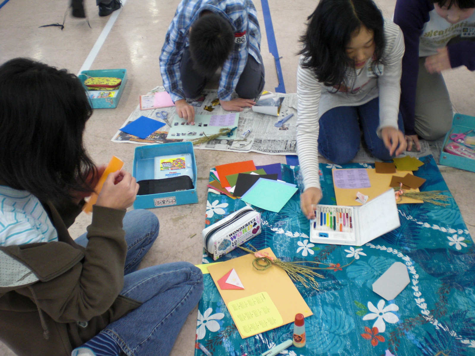 小学校5年生に、稲穂クラフトを教えてきました。 全80人。 インストラクター5人。 「みつあみ」で戸惑う生徒達・・・ ステキに出来た、ミニミニリースを、色画用紙に貼って、カレンダーを作りました。...