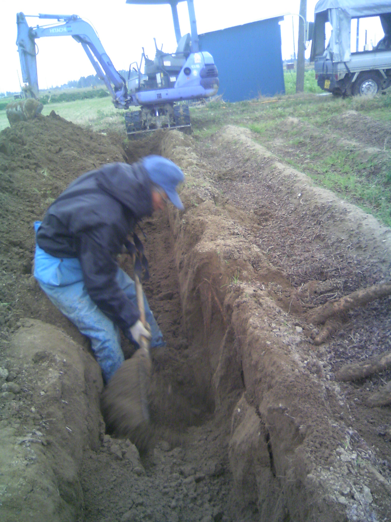 天気も良いし、お正月に向けてご注文頂いているので、長芋を掘っています。 長いものでは、1mくらいに育っているので、バックホーで溝を掘り、その溝の中に入って あとは手作業です。 折れやすいので...