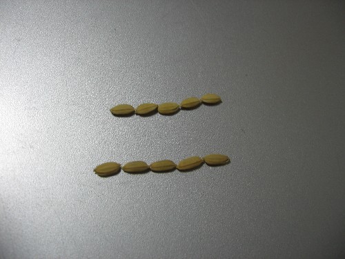 これは何の種だか分りますか? そう、お米(稲)の種です。 上がコシヒカリ、下がバイオエタノール用のお米(北陸193号)です。多く収穫できるように、 味は悪いけど(食べたことは無いですが…)、頑丈...
